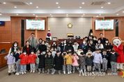 뉴스펀치 김윤걸 기자 | 울산 중구의회가 설 명절을 앞두고 관내 어린이집 원생과 학부모, 교직원을 초청, 견학 행사를 마련했다. 중구의회는 11일 중구 병영 도담어린이집 원생과 학부모, 보육교사 등 50여명이 참가한 가운데 중구의회 의정활동 체험행사를 진행했다. 이날 행사에는 박경흠 의장과 김도운 의원이 참석해 의회 홍보영상 시청, 기초의회의 역할과 기능 강의, 의회시설 견학, 본회의장 체험활동, 기념품 전달 등이 펼쳐졌다. 특히 중구를 상징하는 대표 캐릭터인 ‘울산큰애기’가 함께 동행해 어린이집 원생들과 기념촬영을 하며 뜻깊은 시간을 가졌다. 이번 체험활동에는 원생은 물론 학부모도 함께 동행해 평소 생소하게만 느껴졌던 기초의회를 직접 보고, 느껴보는 기회를 마련했다. 중구의회는 지역 어린이집과 초·중·고 학생을 대상으로 지방의회의 기능과 역할을 알리고 풀뿌리민주주의의 중요성을 몸소 체험할 수 있는 기회를 제공하는 견학·체험 교실을 운영중이며 지방자치 교육과 모의의회 등의 프로그램으로 구성돼 있다. 박경흠 의장은 “자라나는 아이들이 본회의장에서 정책과 행정집행의 상징과도 같