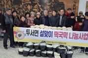 뉴스펀치 김윤걸 기자 | 울주군 두서면 지역사회보장협의체(공동위원장 노동식, 설석환)가 10일 두서면 행정복지센터에서 ‘설맞이 떡국떡 나눔 사업’을 실시했다. 이번 사업은 설 연휴 기간 지역 저소득층에게 건강한 먹거리를 제공하기 위해 두서면 사회복지지정기탁금과 두서면 지역사회보장협의체 위원들이 모은 성금으로 추진됐다. 협의체는 위원들은 두서면에서 키운 쌀로 떡국떡을 정성껏 마련해 두서면 저소득계층 130세대에 전달하며 이웃 간의 온정을 나눴다. 노동식 공동위원장은 “어려운 이웃들이 두서에서 키운 쌀로 마련한 떡국떡으로 맛있는 떡국을 해드시면서 행복한 설명절을 보내시길 바란다”며 “앞으로도 주위의 어려운 이웃을 위한 관심과 지원을 아끼지 않겠다”고 말했다.