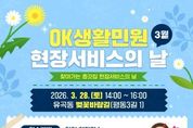 뉴스펀치 김윤걸 기자 | 울산시는 ‘2026년 오케이(OK)생활민원 현장서비스의 날’을 오는 3월 28일 중구 유곡동을 시작으로 본격 개시한다고 밝혔다. ‘오케이(OK)생활민원 현장서비스의 날’은 시민들이 일상생활 속에서 체감하고 만족할 수 있는 행정 서비스를 제공하기 위해 공원이나 아파트단지 등 주거 밀집지역을 직접 찾아가 생활 속 불편을 해결하는 울산시의 대표적인 ‘울부심 생활+’ 사업(프로젝트)이다. 올해 첫 행사는 3월 28일 오후 2시부터 4시까지 중구 유곡동 벚꽃바람길에서 열린다. 이날 현장에서는 주민 수요가 가장 높은 ▲칼갈이(1인 2자루) ▲화분 초화 심기(분갈이, 1인 1개) ▲자전거 수리 ▲나무도마 수선 및 체험 ▲선풍기 단순 수리(15대 한정) ▲장난감 수리 ▲반려동물 위생 관리 등 다양한 서비스를 제공한다. 특히 올해는 제9회 전국동시지방선거 일정에 따라 지자체장의 선거에 영향을 미치는 행위 금지 기간(4월 4일~6월 3일)을 준수하여 전체적인 행사 운영시기가 조정됐다. 이에 따라 중구에서는 3월 28일 유곡동과 4월 3일 복산동 도화공원에서 우선 운영한 뒤,