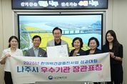 뉴스펀치 김윤걸 기자 | 전라남도 나주시가 혁신도시 이전공공기관과 함께 ESG 실천과 지역 상생협력을 위해 대규모 환경정비 활동을 펼쳤다. 나주시는 지난 18일 한수제 일원에서 이전공공기관과 나주시 공직자 등 180여 명이 참여한 환경정비 행사를 진행했다고 19일 밝혔다. 이번 행사는 1사1촌 자매결연 등 지역사회와의 교류 확대와 지속 가능한 협력체계 강화를 위해 마련했다. 행사에는 한국전력, 한국농어촌공사, 한전KPS, 전력거래소 등 13개 이전공공기관과 나주시 공직자들이 함께했다. 참가자들은 3개 구간으로 나뉘어 쓰레기 수거, 무단투기 계도, 환경보호 캠페인을 펼치며 한수제 일원 정화 활동에 구슬땀을 흘렸다. 특히 이번 환경정비는 단순한 봉사활동을 넘어 이전공공기관이 추진 중인 사회공헌 활동과 나주시의 상생협력을 유기적으로 연결하고 확대하는 계기가 됐다. 시는 이번 행사를 기반으로 이전공공기관과의 교류를 정례화하고 환경보호를 비롯한 다양한 분야에서 지속 가능한 협력 모델을 구축할 방침이다. 임은숙 나주시 미래전략과장은 “이번 활동을 계기로 이전공공기관과 함께