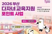 뉴스펀치 김윤걸 기자 | 부산시는 부산시교육청과 함께 학령기 자녀를 둔 다자녀 가정을 지원하기 위한 '부산 다자녀 교육지원포인트' 사업을 추진한다고 밝혔다. 다자녀 가정의 교육비 지출 부담 완화를 위해 시와 시교육청이 7대 3으로 재원을 분담해 운영하는 사업으로 2024년 시작해 올해로 3년째 추진된다. 지난해 12만 2천여 다자녀 가정에 총 414억 원을 지원했으며, 공공마이데이터 연계를 통해 신청·심사 절차를 간소화한 결과 절차 만족도가 2024년도 76.1%에서 91.6%로 크게 개선되는 등 이용 편의성과 정책 체감도가 높아진 것으로 나타났다. '부산 다자녀 교육지원포인트'는 소득·재산 기준과 관계없이 자녀 1명 이상이 2008∼2019년생(초·중·고 학령)에 해당하는 부산시 다자녀가정이면 누구나 지원받을 수 있다. 지원 규모는 2자녀 가정에 30만 원, 3자녀 이상 가정에 50만 원의 교육지원포인트가 지급된다. 다만, 부산 시민 혜택 제공을 위해 신청인 주민등록 기준 최소 3개월 이상 부산시에 거주해야 한다, 교육지원포인트는 부산 지역화폐 동백전의 정책지원금으로 지