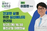 뉴스펀치 김종율 기자 | 울진군은 오는 9월 25일 오후 4시 30분 울진군청 대회의실에서‘교육하는 의사’이동환 의사를 초청해‘건강한 삶을 위한 심신에너지 관리법’을 주제로 제32회 목요특강을 개최한다. 이동환 의사는 직무스트레스연구소 원장이자 유튜브 구독자 110만 명을 보유한 건강 전문 크리에이터로, 다수의 방송과 저서를 통해 대중에게 쉽고 실천 가능한 건강 관리법을 전해왔다. 이번 특강은 일상에서 바로 실천할 수 있는 건강 관리 방법을 다루며, 특히 현대인이 겪는 만성피로와 스트레스 해소를 위한 구체적 대안을 제시해 군민들에게 실질적인 도움이 될 것으로 기대된다. 손병복 울진군수는 특강에 앞서“바쁜 일상 속에서도 몸과 마음의 균형을 지키는 것이 무엇보다 중요하다”며“이번 특강을 통해 군민들께서 건강을 관리하는 새로운 지혜를 얻고, 더 행복하고 활력 있는 생활을 이어가시길 바란다”라고 말했다. 한편, 제33회 목요특강은 오는 10월 16일(목) 오후 5시, 울진문화예술회관에서 개최할 예정이며, 방송인 서경석을 초청해‘작은 변화가 미래를 바꾼다’를 주제로 강연이 진행될 예정이다.