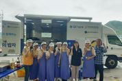 뉴스펀치 김종율 기자 | 경산시노인종합복지관(관장 김오기)에서 운영하는 ‘참! 좋은 사랑의 밥차’가 18일 남천면 소재지에 있는 협석경로당을 방문하여 70여 명의 어르신들에게 든든한 중식을 제공했다. IBK기업은행의 후원으로 운영되는 ‘참! 좋은 사랑의 밥차’는 경산시노인종합복지관에서 매주 목요일마다 경산시 관내 경로당을 순회하며 현장에서 직접 조리한 음식을 제공해 드리는 사업으로 어르신들의 각광을 받고 있다. 협석리경로당 회장(정문현)은 “사랑의 밥차가 마을까지 방문하여 따뜻한 점심을 제공해 주어 고맙다, 아주 맛있고 든든한 한끼였다”며 감사함을 전했다. 장태향 남천면장은 사랑의 밥차 현장 방문을 통해, 정성을 다해 준비해 주신 노인종합복지관 관계자에게 감사함을 전하며 점심 배식에 함께 참여하여 어르신들이 맛있게 드시고 늘 건강하기를 당부했다.