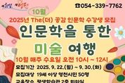 뉴스펀치 김종율 기자 | 영천시 평생학습관(관장 정경자)은 22일부터 30일까지 ‘2025년 하반기 The(더) 공감 인문학 특강’ 10월 수강생을 모집한다. 이번 특강은 ‘인문학을 통한 미술 여행’이라는 주제로 진행되며, 쉽게 접할 수 없고 이해하기 어려운 미술 작품들을 인문학을 통해 만나볼 수 있도록 기획됐다. 10월 1일 첫 강의는 신경진 작가가 ‘영화로 미술 쉽게 이해하기’를, 10월 15일 2회차 강의는 백인필 미술해설가가 ‘해설이 있는 미술 작품 감상’을 주제로 진행한다. 10월 22일 3회차 강의는 임현락 경북대 미술학과 교수가 ‘동양화: 한국의 미술을 찾아서’를, 10월 29일 마지막 강의는 최영주 대구한의대 교수가 ‘고통을 작품으로 승화하다’에 대해 강의한다. 수강 신청은 평생학습관 홈페이지를 통해 온라인으로 접수할 수 있으며, 강의는 10월 매주 수요일 오전 10시부터 오후 12시까지 평생학습관 2층 회의실에서 진행된다. 자세한 사항은 영천시 평생학습관 홈페이지를 참고하거나, 평생학습관 교육운영팀으로 문의하면 안내받을 수 있다.