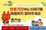 뉴스펀치 김종율 기자 | 영덕군은 환경미화원의 휴무를 보장하고 업무 능률을 높이기 위해 추석 연휴 기간인 다음 달 3, 6, 7일 사흘간 쓰레기 수거 업무를 일시적으로 중단한다. 다만, 영덕군은 명절 전날 추석맞이 특별 환경 정화 활동을 시행해 고향으로 돌아오는 귀성객들에게 쾌적한 환경을 제공하고, 군 누리집, 소식지 등을 통해 연휴 기간 중 쓰레기 분리배출 요령 등을 안내할 예정이다. 김신규 환경위생과장은 “추석 당일 전에 생활 쓰레기를 미리 배출하고, 추석 연휴 동안에는 다음날인 7일 저녁부터 쓰레기를 배출해 달라”라고 당부했다.