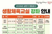뉴스펀치 박상훈 기자 | 영등포구가 구민의 건강 증진과 생활체육 활성화를 위해 올해 상반기 생활체육 교실 참여자를 모집한다고 밝혔다. 이번 상반기 생활체육 교실은 파크골프, 실내 파크골프, 게이트볼, 요가, 댄스스포츠, 라인댄스, 당구 등 7개 종목, 총 17개 교실로 운영된다. 구는 구민들의 다양한 생활체육 수요를 반영해 종목을 구성했다. 특히 올해 구는 파크골프에 대한 구민들의 높은 관심을 반영해 ‘실내 파크골프 교실’을 신설했다. 수업은 영등포구 실내 파크골프장 3호점(신길3동 구청사)에서 진행되며, 날씨에 영향을 받지 않는 실내 공간에서 보다 쾌적하고 안전하게 파크골프를 배울 수 있도록 했다. 수업은 4월부터 약 3개월간 운영한다. 반별 모집 인원은 20명 내외이며, 교육 장소는 종목별로 다르다. 신청은 파크골프 종목이 3월 9일까지, 실내 파크골프를 포함한 그 외 종목은 3월 12일부터 3월 18일까지 받는다. 참여를 희망하는 구민은 서울시 공공서비스예약 누리집 ‘교육강좌’ 게시판을 통해 온라인으로 신청하거나, 신청 기간 내 구청 본관 5층 체육진흥과를 방문해 접수하면 된다.