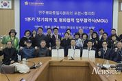 뉴스펀치 박상훈 기자 | 민주평화통일자문회의 포천시협의회는 지난 2월 27일 포천시청 시정회의실에서 ‘2026년 1분기 정기회의 및 평화통일 협력 업무협약 체결식’을 개최했다. 이번 행사는 조용춘 협의회장을 비롯한 자문위원들과 업무협약 체결 기관 관계자, (사)공정평화통일국민연대 포천시지회 및 기후위기 포천시민행동 관계자 등이 참석했다. 1부 정기회의에서는 지역 내 통일 기반 조성을 위한 정책 건의와 의견 수렴이 이루어졌으며, 2026년 상반기 주요 사업에 대해 논의했다. 2부 행사에서는 지역 시민단체와 업무협약을 체결했다. 이번 협약을 통해 각 기관은 평화통일을 위한 협력 체계를 공고히 구축하기로 뜻을 모았다. 또한, 이날 행사에서는 평화통일 기반 구축에 기여한 공로로 임지은 자문위원이 경기도지사 표창을 전수받는 영예를 안았다. 조용춘 협의회장은 개회사를 통해 “이번 정기회의는 급변하는 정세 속에서 한반도 평화 공존을 위한 실천적 방안을 모색하는 뜻깊은 자리”라며, “지역 시민단체와 긴밀한 협력을 통해 포천시가 평화통일의 마중물 역할을 수행할 수 있도록 자문위원들의 지혜를 모아달라”고 당부했다.