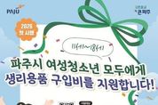 뉴스펀치 박상훈 기자 | 파주시는 여성청소년의 건강과 복지 향상을 위해 2026년 3월부터 11~18세 파주시 여성청소년 모두를 대상으로 생리용품 지원금을 지급한다. 지원 대상자는 파주시에 주민등록, 외국인등록, 국내거소 신고가 되어있는 11~18세의 여성청소년으로 월 14,000원씩 연 최대 168,000원의 생리용품 구입비를 모바일 지역화폐로 지급하며, 해당 지역화폐는 생리용품 구매 전용으로 사용이 제한된다. 온라인의 경우 3월 5일 14시부터 경기민원24에서 신청이 가능하며, 방문 신청은 3월 4일부터 주민등록상 주소지 행정복지센터에서 접수한다. 지원금은 신청 이후 자격 조건 검증을 통해 4월 20일부터 순차적으로 지급되며, 신청 자격 확인을 위해 최소 2주 이상의 검토 기간이 소요될 것으로 예상된다. 지원금은 파주시 지역화폐 가맹점으로 등록된 4개 편의점(지에스(GS)25, 시유(CU), 이마트24, 세븐일레븐)과 배달특급 앱의 생리용품 전용몰(온라인)에서 사용할 수 있으며 해당 사용처에서 지원금 사용을 위해서는 경기지역화폐 앱 설치 및 가입이 필수인 점에 유의가 필요하다. 김지숙 청년청소년