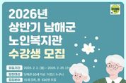뉴스펀치 박세훈 기자 | 남해군 노인복지관은 2026년 상반기 프로그램 수강생을 2월 2일부터 25일까지 모집한다고 밝혔다. 상반기 프로그램은 평생교육 2강좌, 취미여가 11강좌, 건강증진 3강좌 등 총 15강좌로 구성됐으며, 3월 3일부터 6월 26일까지 운영된다. 세부적인 프로그램은 스마트폰교육, 노래교실, 고고장구반, 손발 마사지 등 다양한 교육이 준비되어 있으며 자세한 사항은 남해군 홈페이지에서 확인 가능하다. 수강생은 선착순으로 모집하며, 수강신청 인원 기준 미달시 해당 프로그램은 폐강된다. 수강료는 강좌당 5천원으로 교재비와 재료비는 별도다. 기초생활수급자, 국가유공자, 등록장애인은 무료이며 차상위계층은 수강료의 50%가 감면된다. 수강을 원하는 군내 60세 이상 어르신은 남해군 노인복지관(055-860-3723)으로 방문하시거나 팩스(Fax : 860-3725)로 신청하면 된다. 남해군 관계자는 “어르신들의 건강하고 활기찬 노후생활을 도모할 수 있도록 건강 증진, 평생교육, 취미생활 등의 다양한 분야별 프로그램를 마련했다”며 “준비한 프로그램 수강을 통하여 어르신들이 신체적·정신적으로 더욱