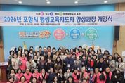 뉴스펀치 박세훈 기자 | 포항시는 18일 오전 뱃머리 평생학습원 소강당에서 ‘2026년 포항시 평생교육지도자 양성과정’ 개강식을 개최했다. 이번 교육 과정은 평생교육 분야에서 전문적인 봉사활동을 희망하는 시민 50명을 대상으로 운영되며, 오는 4월 10일까지 총 15회 45시간에 걸쳐 진행된다. 교육은 마을 단위 평생학습을 이끌 지도자를 양성하기 위한 과정으로 평생교육 분야 교수와 현장 전문가들이 강사진으로 참여해 이론과 실무 교육을 병행한다. 주요 교육 내용은 평생교육의 이해, 평생교육지도자의 역할, 마을 평생교육 프로그램 기획 및 운영 등으로 구성됐다. 이날 개강식에는 조현미 포항시 평생학습원장을 비롯해 김용재 포항시 평생교육지도자협의회 회장 등 관계자들이 참석해 수강생들을 격려했으며, 강사진으로는 양흥권 대구대학교 교수와 정은희 경남대학교 교수 등 평생교육 분야 전문가들이 참여한다. 교육을 수료한 수강생에게는 포항시장 명의의 수료증이 수여된다. 포항시는 2011년부터 평생교육지도자 양성과정을 운영해 왔으며 현재까지 총 806명의 수료자를 배출했다. 수료