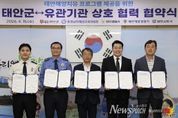 뉴스펀치 이현승 기자 | 태안군이 지난 15일 군청 소회의실에서 태안해양치유센터와 관내 유관기관 간 공직자 심신 치유 및 복지 증진을 위한 업무협약을 체결하고 기관별 맞춤형 해양치유 프로그램 운영 기반을 마련했다. 이번 협약에는 태안군을 비롯해 태안교육지원청과 태안경찰서, 태안해양경찰서, 태안소방서 등 지역 내 5개 기관이 참여해 상호 협력 체계를 구축하고 해양치유 자원을 활용한 맞춤형 프로그램을 함께 운영하기로 했다. 협약에 따라 각 기관 소속 직원과 가족들은 태안해양치유센터 이용 시 상시 40%의 할인 혜택을 받게 되며 군은 기관별 특성에 맞춘 다양한 치유 프로그램을 지원할 방침이다. 또한 각 기관의 워크숍과 힐링캠프 등 단체 행사를 센터 프로그램과 연계해 운영함으로써 소속 직원의 복지 증진을 돕고 센터 운영 활성화와 해양치유 프로그램 확산에도 힘쓸 계획이다. 이날 협약식은 센터 홍보영상 시청을 시작으로 참석자 소개와 환영사, 기관별 답사, 협약서 낭독, 서명 및 교환, 기념촬영 순으로 진행됐으며 기관 대표들은 상호 협력을 통한 지역 상생 의지를 다졌다. 군은 이번 협약을 계기로 유