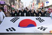 뉴스펀치 이현승 기자 | 충북 보은군은 1일 제107주년 3·1절을 맞아 ‘태극기 물결 만세운동’을 개최하고 순국선열의 숭고한 독립 정신을 기리는 뜻깊은 시간을 가졌다. 한국자유총연맹 보은군지회 주관으로 열린 이번 행사는 보훈단체와 사회단체, 군민 등 900여 명이 함께 참여한 가운데 진행됐다. 도심을 가득 메운 태극기 물결 속에서 참가자들은 대한독립만세를 외치며 107년 전 그날의 함성을 재현했다. 참가자들은 중앙사거리에서 뱃들공원까지 행진하며 3·1운동의 역사적 의미를 되새겼고, 태극기가 일제히 펄럭이는 장면은 현장을 찾은 군민들에게 깊은 울림을 전했다. 거리에는 응원과 박수가 이어지며 세대를 아우르는 공감의 장이 마련됐다. 행진 이후에는 평화의 소녀상 헌화를 통해 선열들의 희생을 추모하고, 독립선언서 낭독으로 자주독립의 의미를 되새겼다. 이어 보은군립합창단의 공연이 펼쳐져 행사 분위기를 한층 고조시켰으며, 참가자 전원이 ‘독도는 우리땅’ 노래에 맞춰 플래시몹을 선보이며 나라 사랑의 의지를 다지는 시간으로 행사를 마무리했다. 최재형 보은군수는 “제107주년 3·1절을 맞아 군민과 함께한 이번 행