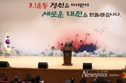 뉴스펀치 이현승 기자 | 대전시는 3월 1일 오전 10시 30분 시청 대강당에서 제107주년 3‧1절 기념행사를 개최하고, 조국 독립을 위해 헌신한 순국선열과 애국지사들의 숭고한 희생과 애국정신을 기렸다. 행사에 앞서 시는 국립대전현충원을 찾아 순국선열과 독립운동가들의 넋을 기리는 참배를 진행했다. 이날 기념식에는 이장우 대전시장을 비롯해, 독립유공자 유가족, 보훈단체, 주요 기관‧단체장, 시민 등 500여 명이 참석한 가운데 ▲독립선언서 낭독 ▲기념사 ▲기념 공연 ▲3‧1절 노래 제창 ▲만세삼창 순으로 진행됐다. 특히 올해 독립선언서 낭독은 각 세대를 대표하는 인물들이 참여해 그 의미를 더했다. 낭독에는 양준영 광복회 대전지부장을 비롯해 광복회 유성대덕지회가 주최한 초등학생 나라사랑 백일장에서 2024년과 2025년에 대상을 수상한 조영준‧유소율 학생, 그리고 우송대학교 학군사관후보생이자 대전시 대학생 홍보단 남수현 학생이 참여해 3‧1운동의 숭고한 정신을 되새겼다. 이장우 시장은 기념사를 통해 “107년 전 인동장터와 유성장터에서 울려 퍼진 만세 함성이 오늘의 대전을 만든 뿌리”라며 “대전시는