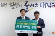 뉴스펀치 이현승 기자 | 대전 대덕구는 26일 하나은행으로부터 2026년 대덕구 주요 문화축제의 성공적인 개최를 위한 후원금 800만원을 기탁받았다고 밝혔다. 이날 기탁식에는 대덕구 관계자를 비롯해 이동열 하나은행 부행장, 안창혁 하나은행 대전영업본부 지역대표, 김인옥 오정동지점장 등이 참석한 가운데 지역 축제 발전을 위한 후원금을 전달받았다. 구는 전달받은 성금을 오는 28일 개최되는 ‘제27회 신탄진 대보름 축제’와 4월 25일 개최 예정인 ‘제29회 동춘당 문화제’의 원활한 운영과 안전관리, 프로그램 지원 등에 사용할 계획이다. 신탄진 대보름 축제는 전통 민속놀이와 쥐불놀이 등 지역 고유의 세시풍속을 계승하는 대표 행사이며, 동춘당 문화제는 조선시대 학자 송준길 선생의 정신을 기리고 전통문화를 계승하는 대덕구의 상징적 문화행사다. 이동열 하나은행 총괄대표는 “대덕구민이 함께 어우러지는 뜻깊은 문화행사에 동참하게 돼 기쁘다”며 “앞으로도 지역사회와 상생하며 동반 성장하는 금융기관이 되도록 지속적인 협력을 이어가겠다”고 말했다. 대덕구 관계자는 “우리 대덕구의 대표 전통문화행사를 위해