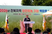 뉴스펀치 정홍균 기자 | 전북특별자치도가 본격적인 영농철을 앞두고 호남평야에 물길을 열며 한 해 농사의 시작을 알렸다. 도는 23일 정읍시 태인면 낙양관리소에서 ‘2026년 안전영농기원 통수식(백파제)’을 개최했다. 이날 행사에는 김종훈 경제부지사를 비롯해 한국농어촌공사 관계자, 전북 농업인단체연합회장 등 100여 명이 참석해 풍년 농사와 안전한 영농을 기원했다. 통수식은 섬진강 수계를 기반으로 한 농업용수를 본격 공급하기에 앞서 무재해·무사고 영농을 다짐하는 전북 농업의 대표적 행사다. ‘백파(百派)’는 낙양취입수문 기념비에 새겨진 ‘일원종시백파(一源從是百派)’에서 유래한 말로, 하나의 물줄기가 백 갈래로 퍼져 호남평야를 적신다는 의미를 담고 있다. 특히 낙양취입보를 통해 방류된 섬진강 용수는 정읍·김제·부안 일원 3만3,177ha에 달하는 농경지로 공급된다. 이는 도내 전체 농경지의 약 30% 수준으로, 김제·정읍 간선 등 총연장 154km의 용수로를 따라 공급되며 가뭄과 기후변화에도 안정적인 농업 생산을 뒷받침하는 핵심 기반 역할을 한다. 이날 행사에서는 식전 농악공연을 시작으로 기념사와 격려