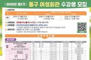 뉴스펀치 정홍균 기자 | 인천 동구는 오는 3월 9일~4월 3일까지‘2026년 제2기 동구 여성회관’ 수강생을 모집한다고 밝혔다. 오는 4월 1일부터 3개월 과정으로 진행되는 제2기 정규강좌 프로그램은 ▲실내인테리어(도배 및 필름) ▲등라탄공예 ▲요리·공예 프로그램 등 총 26개 과정으로 운영되며, 직장인을 위한 바리스타 2급 야간반 및 퇴근 후 ‘뚝딱 반찬’ 등 야간 강좌도 운영될 예정이다. 또한 브런치 만들기 강좌를 1개월 단기 특강으로 운영해 주민들이 부담 없이 참여할 수 있도록 구성했으며, 일일 무료 특강으로는 ▲핸드드립&퓨전떡 만들기 ▲딸기도지마롤케이크 만들기 ▲패션도식화(옷그리기) 특강이 준비된다. 수강 신청은 인천시 거주자를 대상(동구 주민 우선)으로 여성회관 홈페이지를 통해 선착순 접수하며 온라인 접수에 어려움을 겪는 자, 동구사랑상품권, 평생교육 바우처 사용자는 여성회관으로 방문하여 신청할 수 있다. 김찬진 동구청장은“여성회관 교육 프로그램이 주민들의 자기계발과 역량강화에 실질적인 도움이 되기를 희망한다”며 “여성뿐 아니라 남성 수강생도 많은 문의와 참여를 바란다”고 말했다.