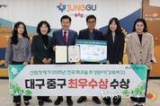 뉴스펀치 조평훈 기자 | 대구 중구는 산림청이 주관한 ‘2025년 녹색도시 우수사례’ 전국 공모에서 대구 지역에서 유일하게 학교숲 조성 분야 최우수상을 수상하는 쾌거를 거두었다고 밝혔다. 이번 공모는 전국 지자체의 녹색정책 성과를 평가하는 국가 단위 사업으로, 학교숲 분야에서는 총 6개 기관이 우수사례로 선정됐다. 중구의 경북여자고등학교 학교숲은 조성 공간의 적합성, 수종 선정의 다양성, 수목 배치의 적정성, 주민·학생 참여도 등 전 항목에서 고르게 높은 평가를 받았다. 중구청은 경북여자고등학교의 노후화된 녹지공간을 학생 학습·휴식이 가능한 750㎡ 규모의 학교숲으로 재정비했다. ‘사계절 정원’을 콘셉트로 왕벚나무·배롱나무·청단풍·에메랄드그린 등을 식재하고, 자연석 포장 산책로·평의자·안내판·명찰 등을 설치해 학생들이 산책·명상하며 머무를 수 있는 공간을 조성했다. 특히, 조성 과정에서 학생·교직원·동창회·지역 주민 의견을 설계에 적극적으로 반영함으로써 모두가 함께 누리는 열린 공간으로서의 가치를 높이고, 학교숲이 학습·휴식 공간과 주민·학생 모두가 이용할 수 있는 ‘도심 속 열린 녹지’로 조성한 점도 인정받았