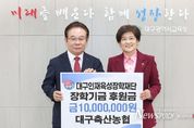뉴스펀치 조평훈 기자 | 대구시교육청은 1월 16일, 대구축산농협(조합장 최성문)에서 대구인재육성장학재단에 장학금 1천만 원을 기탁한다고 밝혔다. 대구축산농협은 대구 전역의 자치단체 및 복지재단과 협력해 봉사활동, 생활물자지원 등‘지역사랑 나눔운동’을 실천해 오고 있으며, 지역 인재 육성을 위한 뜻깊은 나눔에 동참하고자 2019년부터 매년 대구인재육성장학재단에 장학금을 기탁하고 있다. 최성문 조합장은 “경제적으로 어려운 환경에 처한 학생들에게 꾸준히 장학금을 지원할 수 있도록 앞으로 더 살피고 노력하겠다.”는 뜻을 전했다. 강은희 교육감은 “학생들이 꿈과 희망을 갖고 학업에 매진할 수 있도록 도움을 주신 대구축산농협 조합장님을 비롯한 직원 여러분께 감사드린다.”며 “기탁한 장학금을 잘 활용해 학생들이 미래 인재로 성장할 수 있도록 최선을 다하겠다.”라고 말했다.