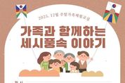 뉴스펀치 조평훈 기자 | 대구교육박물관은 오는 12월 20일 오전 10시와 오후 2시, 박물관 행복공감실에서 총 2회에 걸쳐 운영되는 12월 주말가족체험교실 ‘가족과 함께 하는 세시풍속 이야기’에 참여할 초등학생을 포함한 16가족(회차별 8가족)을 모집한다. 이번 체험교실은 세시풍속을 주제로 한 탐구 및 표현 활동을 통해 역사적 지식을 함양하고, 역사를 중심으로 미술·실과 등 다양한 교과와의 융합 활동을 통해 학생들의 창의력을 높이고자 마련됐다. 주요 활동은 ▲세시풍속 개념 탐구하기, ▲2026 세시풍속 달력 만들기, ▲세시풍속 카드 놀이 및 보드게임, ▲전시물 탐방 등으로, 가족 간 소통을 촉진하고, 세시풍속의 의미를 자연스럽게 이해할 수 있는 다양한 체험이 진행된다. 박물관은 12월 5일부터 누리집을 통해 참여 신청을 접수하며, 기타 자세한 사항은 교육학예부로 문의하면 된다. 홍진근 관장은 “이번 프로그램을 통해 가족들이 함께 세시풍속의 의미를 배우고 체험하면서, 일상의 쉼 속에서 역사와 문화의 가치를 느끼시길 바란다”며, “앞으로도 박물관이 지역사회와 소통하며 역사와 문화를 확산하는 공간으로