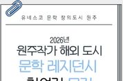 뉴스펀치 조평훈 기자 | 유네스코 문학 창의도시인 원주시는 지역 문학인의 창작활동 지원과 국제 교류 확대를 위해 ‘원주작가 해외 도시 문학 레지던시’ 참여 희망 작가를 4월 30일까지 모집한다. 이번 모집은 향후 해외 문학 도시와의 일대일 상호 교환 레지던시 추진에 대비해 참여 의사가 있는 원주 작가 인력풀을 구성하기 위한 것이다. 시는 지원서를 사전 제출한 작가를 우선 검토하고, 실제 교환 레지던시 추진 시 선발에 우대할 계획이다. 모집 대상은 시, 소설, 어린이 동화, 그림책 등 문학 분야 활동 작가로, 작품 활동 경력이 있으며 원주시 출신 또는 원주에 거주하거나 직장·작업실이 있는 자이다. 또한 해외 문학 도시 및 예술인과의 네트워킹에 관심이 있고, 문화 행사·교류·인터뷰·축제 등에 적극 참여할 수 있는 작가를 우대한다. 중급 이상의 외국어 의사소통 능력 보유자 및 출판 경력자는 가점 대상이다. 향후 레지던시 작가로 선발되는 경우 항공료가 지원되며, 초청 도시에서 숙박 시설이 제공된다. 레지던시 기간 중 창작된 작품은 원주시 유네스코 창의도시 홍보를 위해 전시·게재될 수 있으며, 번역본 제작 지원도 가능하