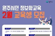 뉴스펀치 조평훈 기자 | 원주시는 시민들의 디지털 활용 능력 향상과 정보 격차 해소를 위해 시민정보화교육 2월 수강생을 모집한다. 일산동 시민정보화교육장에서 2월 2일부터 3월 6일까지 5주간 ‘컴퓨터기초’, ‘엑셀2021’, ‘한글2022’ 등 총 3개 과정을 운영한다. 20세 이상 원주시민이라면 누구나 참여할 수 있다. 신청은 1월 15일 오전 9시부터 원주시 통합예약플랫폼을 통해 선착순으로 접수한다. 단, ‘컴퓨터기초’ 과정은 컴퓨터 조작이 어려운 분들을 위해 전화 접수로 운영한다. 자세한 사항은 시민정보화교육장으로 문의하면 된다. 최진선 정보통신과장은 “디지털 환경이 일상 전반으로 확대됨에 따라 누구나 기본적인 디지털 환경에 적응하고 활용할 수 있도록 돕는 것이 중요하다”라며, “시민 눈높이에 맞춘 정보화 교육을 지속적으로 추진하겠다”라고 말했다.