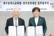 뉴스펀치 조평훈 기자 | 대구시교육청은 2월 26일 오후 5시, 시교육청 접견실에서 한국장학재단과 업무 협약을 체결했다. 이번 협약은 학자금 지원 정책과 초·중·고교 교육 현장을 연계한 협력 체계를 구축하고 지역 기반 인재 양성에 기여하기 위해 마련됐다. 협약에 따라 양 기관은 ▲학생 및 학부모 대상 학자금 지원 제도 정보 제공 및 홍보, ▲학교 현장과 연계한 협력 사업 추진 및 참여 지원, ▲학생지원사업 발전을 위한 상호 협조 및 홍보 지원, ▲기타 지역 기반 인재 양성 관련 업무 등을 함께 추진할 계획이다. 이날 협약식에는 강은희 교육감, 배병일 한국장학재단 이사장을 비롯해 중등교육과장, 중등장학담당 장학관, 한국장학재단 관계자 등 10여명이 참석했다. 배병일 한국장학재단 이사장은 “이번 협약은 경제적 여건과 관계 없이 의지와 능력이 있으면 누구나 공부할 수 있는 여건을 마련할 수 있는 뜻깊은 출발점이 될 것”이라며 “우리 사회의 미래인 학생들이 사회 구성원으로 당당히 성장할 수 있도록 든든한 버팀목이 되겠다”고 전했다. 강은희 교육감은 “한국장학재단과의 협력을 통해 모든 학생들에게