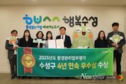 뉴스펀치 조평훈 기자 | 대구 수성구는 지난 24일 대구시가 주관하는 ‘2025년도 환경관리업무 평가’에서 4년 연속 우수상을 수상했다. 이번 평가는 대구시 9개 구·군을 대상으로 2025년 한 해 동안 추진한 환경정책, 기후대기, 수질개선 등 총 28개 항목의 환경관리 업무 추진 실적을 종합적으로 평가해 우수기관을 선정하는 방식으로 진행됐다. 수성구는 용학도서관 기후환경교육 우수도서관 지정, 생태관광 투어 등 다양한 환경교육 프로그램 운영, 녹색제품 구매 실적, 수질오염물질 배출사업장 관리, 자연환경 보전을 위한 망월지 생태축 복원사업 추진 등 다양한 분야에서 성과를 인정받았다. 김대권 수성구청장은 “탄소중립을 통해 기후변화에 적극 대응해야 하는 중요한 시기에 4년 연속 우수기관으로 선정돼 뜻깊다”며 “올해도 환경관리 분야 및 자연환경 보전사업을 내실 있게 추진해 쾌적하고 살기 좋은 수성구가 되도록 최선을 다하겠다”고 말했다.