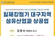 뉴스펀치 조평훈 기자 | 대구문화예술진흥원 박물관운영본부 소속 대구근대역사관은 ‘대구 도심 공장굴뚝, 기계소리 -근대 대구 섬유 읽기-’ 특별기획전과 연계하여 11월 26일 오후 2시에 ‘일제강점기 대구지역 섬유산업과 상공업’을 주제로 제40회 열린 역사문화 강좌를 개최한다. 대구근대역사관은 지난 9월 30일부터 국립대구박물관 복식문화특성화박물관 협의체 및 지역 박물관 공동사업으로 ‘대구 도심 공장굴뚝, 기계소리 –近代 대구 섬유 읽기-’ 특별기획전을 성황리에 진행하고 있다. 전시 기간 중에는 깊이 있는 전시 이해와 홍보를 위해 연계 행사를 개최하고 있는데, 11월 12일에는 대구 도심 속의 섬유산업을 찾아보는 도보 답사를 진행했으며, 11월 15일과 22일에는 ‘대구 근대 섬유 전시 보며, 양말목으로 드림캐처 만들기’ 어린이 체험학습을 마련했다. 이어서 11월 26일에는 ‘일제강점기 대구지역 섬유산업과 상공업’ 현황을 알아보는 특강을 개최한다. 특강은 근대 일본 경제사 및 경영 분야를 전공한 계명대학교 김명수 교수를 초청해 진행한다. 김명수 교수는 일제강점기 조선인의 기업활동을 연구