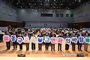 뉴스펀치 조평훈 기자 | 대구 동구청은 지난 17일, 대구텍스타일콤플렉스(DTC) 다목적홀에서 학부모, 학생, 교육관계자 등 200여 명이 참여한 가운데 ‘동구 교육 성과공유회’를 성황리에 개최했다. 이날 행사는 지난 3년 동안 추진된 교육사업 성과를 돌아보고, 지역 교육발전에 기여한 교육관계자들의 노고를 격려하는 등 지역 교육의 공동 발전을 도모하기 위해 마련됐다. 율금초 ‘율금빛소리합창단’의 식전공연과 동구 교육성과를 담은 홍보영상 상영으로 성과공유회는 시작됐으며, 이어 교육발전에 기여한 교사 5명에게 유공자 표창을 수여했다. 2부에서는 ‘교육혁신으로 여기 동구의 미래지도’를 주제로 김동기 동구진로진학지원센터장의 특강과 동구교육재단과 초·중·고등학교의 우수사례 발표를 통해 동구 교육지원 사업의 다양한 성과를 공유했다. 또한 ‘동구교육에 바란다’ 메시지 작성 부대행사에서는 지역 교육에 대한 폭넓은 의견과 희망을 나눴다. 윤석준 동구청장은 “지난 3년 동안 동구는 학생 중심 맞춤형 교육지원을 통해 많은 성과를 거두었다”며 “오늘 성과공유회가 동구 교육의 긍정적 변화를 공유하는 소중한 시간이 됐길 바
