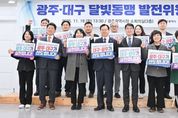 뉴스펀치 조평훈 기자 | 영호남 상생협력의 상징인 ‘달빛동맹’이 인공지능(AI)과 미래산업을 중심으로 한 단계 도약하며, 국가균형성장의 새로운 모델을 제시한다. 대구광역시와 광주광역시는 11월 18일 오후 1시 30분, 광주시청에서 개최된 ‘2025년 달빛동맹발전위원회’에서 ‘대한민국 AI 3대 강국 선도’ 등의 비전을 담은 퍼포먼스를 통해 협력 의지를 다지며, 달빛철도에 이은 AI 중심의 초광역협력 2.0 시대 개막을 알렸다. 특히 이번에 신규 공동협력 과제 11개를 확정해 본격 실행에 나서기로 했는데, 그중에서도 양 도시를 대한민국 ‘AI 3대 강국’ 도약을 이끌 AX 거점도시로 육성하는 것이 핵심이다. 구체적으로는 지난 8월 예비타당성조사가 면제된 대구시의 ‘지역거점 AX 혁신 기술개발’ 사업과 광주시의 ‘AX 실증밸리 조성’ 사업을 연계해 시너지를 극대화하는 것을 골자로 한다. 또한, 지역 혁신 성장을 견인할 AI 핵심 인재 양성, 미래 모빌리티 산업 육성 등 국가 경쟁력 강화를 위한 중추적인 역할 수행도 함께 하기로 뜻을 모았다. 이 외에도 ▲‘2차 공공기관 이전’ 공동