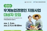뉴스펀치 조평훈 기자 | 대구광역시농업기술센터는 미래 농업 인력의 주축이 될 유능한 농업인을 육성하기 위해 ‘2026년도 후계농업경영인 선발’을 위한 신청을 받는다. 후계농업경영인 육성사업은 농업의 지속적인 발전을 이끌 유망한 예비 농업인과 농업경영인을 발굴해, 일정 기간 자금·교육·컨설팅 등을 종합적으로 지원함으로써 정예 농업 인력으로 육성하기 위한 제도다. 신청 대상은 만 18세 이상 만 50세 미만으로, 영농에 종사한 경력이 없거나 10년 미만인 농업인이다. 선발은 서류심사와 평가 절차를 거쳐 최종 확정된다. 선발자에게는 연리 1.5%, 5년 거치 20년 원금 균등분할 상환 조건으로 세대당 최대 5억 원의 정책자금이 융자 지원되며, 지원금은 농지 구입, 시설 설치, 농기계 구입 등 영농 기반 마련에 활용할 수 있다. 신청 기간은 1월 5일부터 2월 11일 오후 6시까지이며, 신청은 온라인으로만 가능하다. 신청을 희망하는 대상자는 차세대 농림사업정보시스템 ‘농업e지’를 통해 온라인으로 신청하면 된다. 신청 마감일에는 접속 지연 등으로 원활한 신청이 어려울