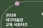 뉴스펀치 조평훈 기자 | 대구문화예술진흥원 대구미술관은 2026년 한 해 동안 지역 문화예술발전과 미술관 교육 현장을 함께 만들어 갈 문화자원봉사자 ‘교육 서포터즈’를 모집한다. 교육 서포터즈는 시민과 미술관을 연결하는 교육 매개자로서 미술관 교육프로그램 운영 지원과 관람객 안내, 온라인 콘텐츠 작성 등 다양한 방식으로 교육 현장에 참여한다. 이를 통해 참여 청년들은 미술관 교육 운영 전반을 경험하며 문화예술 전문 인력으로 성장할 수 있는 기반을 마련하게 된다. 이번 모집은 미술관 교육 및 문화예술에 관심 있는 청년(만 19세~39세)을 대상으로 하며, 총 20명 내외를 선발한다. 활동기간은 2026년 4월부터 1년간이다. 월 2회 이상(1회 4시간) 참여를 기본으로 한다. 모집 공고는 2월 24일부터 대구미술관 누리집을 통해 확인할 수 있으며, 서류 접수는 3월 3일부터 3월 11일 18시까지 전자우편으로 진행된다. 이후 서류 및 면접전형을 거쳐 3월 말 최종 합격자를 발표하고, 4월부터 본격적인 활동을 시작할 예정이다. 교육 서포터즈에게는 1365 자원봉사포털을 통한 봉사 시간 인정과 함께 직