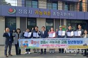 뉴스펀치 최영남 기자 | 정읍시가 청년 귀농·귀촌인들의 안정적인 정착과 지역 농촌 활성화를 위해, 27일 귀농귀촌종합지원센터에서 ‘2026년 귀농·귀촌 청년 교류 원정대’ 발대식을 개최했다. 이번 발대식은 농촌 지역에 정착하는 청년 귀농·귀촌인들이 서로 소통하고 연대할 수 있는 튼튼한 기반을 마련하기 위해 추진됐다. 원정대는 한국농수산대학교 졸업생과 김제 스마트팜 혁신밸리 교육생 등으로 구성됐다. 시는 이들이 갖춘 스마트팜 전문 지식과 실무 역량이 정읍 농업의 디지털 전환과 체질 개선에 기여할 것으로 보고 최종 대상자로 선정했다. ‘청년 교류 원정대’는 앞으로 단순한 정착 지원을 넘어 지역 사회와 연계한 다양한 활동을 펼친다. 주요 활동으로는 어르신 대상 노인 봉사활동을 비롯해, 청년들의 전문성을 살린 지역 농산물 네이밍·브랜딩 컨설팅 참여 등이 있다. 아울러 스마트팜 선도 농가 방문과 전문가 컨설팅을 진행해 고부가가치 첨단 농업에 대한 실무 이해도를 높일 계획이다. 이학수 시장은 “청년 귀농·귀촌인들이 지역에서 고립되지 않고 서로를 의지하며 성장할 수 있는