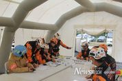 뉴스펀치 최영남 기자 | 해남소방서가 지난 15일 해남군수산업협동조합에서 대규모 재난 상황을 대비한 2025년 긴급구조종합훈련을 실시했다. 이번 훈련은 대규모 재난 발생 시 관계 기관 간 공조 체계를 점검하고 현장 대응 역량을 강화하기 위한 것으로, 해남군청, 해남경찰서, 해남군 보건소, 군부대, 해남수협 등 10개 기관·단체에서 총 148명이 참여했다. 훈련은 대형화재로 인해 다수의 사상자가 발생한 상황을 가정하여 훈련이 진행되었으며, 현장에서는 인명 구조와 화재 진압, 응급처치, 다수 사상자 분류 및 이송, 현장 긴급구조통제단 운영 등 전 과정이 실전처럼 전개됐다. 주요 훈련은 ▲대규모 화재 발생에 따른 화재진압 및 인명구조 ▲옥상 고립자 고가사다리차 구조 ▲공기안전매트를 활용한 대피훈련 ▲다수 사상자 발생 시 응급의료소 운영 및 이송 ▲현장지휘체계 확립 및 상황 전파 등으로 진행됐다. 또한 돌발상황으로, 건물 붕괴로 인해 구조 활동 중이던 소방대원 1명이 갇히는 상황이 부여되어 이에 즉각 신속대응구조대(RIT)가 투입, 대원들을 구조하는 훈련이 병행되어 현장의 긴박감을 더했다. 또한 드론을 활