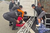 뉴스펀치 최영남 기자 | 비번 활동중인 소방관들이 도로에서 전복된 포터차량을 발견, 신속한 구조활동으로 시민의 생명을 구해 화제가 되고 있다. 소방서에 따르면 비번 활동중이던 해남소방서 소속 박현익 예방홍보팀장과 출근중이던 구조대 3명(장 강성모, 교 조은일, 사 박재용)이 18일(일) 오전 08:10분경 도로 2차선에 전도된 포터차량을 목격하고 즉시 차량통제 및 인명구조를 실시 하는 활약을 펼쳤다. 당시 현장은 좌측으로 전도된 차량 형태가 매우 위험하고 화물차량 특성상 차량내부 사상자가 있을것으로 판단한 예방홍보팀장 및 강성모 반장 등 4명이 신속히 차량 안전화 작업을 실시하고 역할을 분담하여 2차 사고 예방을 위한 도로 통제를 실시하였으며, 차량 내부 인명 검색을 통해 경상자 1명을 안전 구조, 차량 하부에 깔린 중상자 1명은 리프트잭을 활용해 차량을 들어올려 구조하는 능숙한 대처를 취했다. 이후 요구조자 2명을 안전지대로 이동 조치함과 함께 환자 평가 실시 후 도착한 출동대에 인계하였고 조용히 자리를 떠난 것으로 밝혀졌다. 박현익 예방홍보팀장은 “현장을 보고 한걸음에 달려와준 구조대 직원들 덕