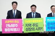뉴스펀치 최영남 기자 | 전라남도가 25일 전남광주통합특별시 출범을 앞두고 도농상생과 산업 협력 현장 점검차 전남·광주를 방문한 윤호중 행정안전부 장관에게 ‘행정통합 비용 500억 원’의 추경 반영을 건의했다. 전남도에 따르면 이날 황기연 전남도지사 권한대행이 광주일가정양립지원본부에서 열린 ‘전남광주통합특별시 출범 준비 합동 워크숍’에서 서면건의를 통해 윤호중 장관에게 지방 주도 성장의 상징적 출발점인 행정통합의 성공적 추진을 위해선 그 과정에 상당한 비용이 발생하는데, 지방재정으로 부담하는데 한계가 있으므로 국가균형발전 정책의 실행 비용으로 국가 투자가 필요하다는 점을 강조했다. 이어 통합비용의 국고 지원이 없으면 행정 공백과 민원 서비스 혼란 등으로 행정통합 동력 약화가 우려되므로, 정부 추경 국회 심의 과정에 ‘행정통합 비용 500억 원’이 반영되도록 적극 지원해줄 것을 요청했다. 워크숍에 앞서 윤호중 장관은 이날 광주 북구의 장성로컬푸드 첨단직매장, 함평 빛그린국가산단, 영광 통합돌봄 간담회 등 현장을 살피며 전남·광주 행정통합을 통한 지역 경쟁력 강화 의지를 내비쳤다. 이날 방문은 행정구역