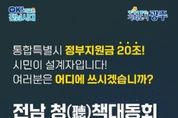뉴스펀치 최영남 기자 | 전라남도는 오는 28일 오후 2시부터 장성 문화예술회관에서 전남 청책대동회 바란을 개최, 전남광주통합특별시 출범과 함께 정부가 약속한 20조 원의 재정 활용 방안을 시도민과 함께 논의할 예정이다. ‘바란’은 시·도민 누구나 참여해 정책을 제안하고 행정과 직접 소통하는 숙의와 공론의 장이다. 그동안 경제·산업, 행정통합 등 지역 현안을 중심으로 시·도민이 참여하는 정책 타운홀 미팅으로 자리매김했으며, 이번이 네 번째다. 이번 행사는 단순 의견수렴을 넘어, 시·도민이 직접 20조 원 재정의 설계에 참여하는 전국 최초의 ‘시민주권형 재정 실험’이라는 점에서 의미가 크다. 공론 중심 논의를 넘어, 전문가 발제와 시·도민 제안을 결합해 실행 가능한 최적의 방안을 도출하는 데 초점을 맞췄다. 행사는 분야별 전문가 발제, 사전 제안자 발언, 현장 자유토론 순으로 진행된다. 산업·일자리·복지·농업·자치·문화·관광 등 각 분야 전문가와 시·도민이 함께 참여해 20조 원 재정의 우선순위와 전략을 논의할 예정이다. 이번 ‘바란’은 ‘20조 시민공동체 포럼’의 출발 신호다. 전남도는