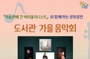 뉴스펀치 탁상훈 기자 | 인천광역시교육청서구도서관은 10월 문화의 달을 맞아 오는 25일 오후 2시부터 3시까지 가재울꿈어린이도서관 1층 북카페에서 ‘도서관 가을 음악회’를 개최한다. 이번 음악회는 『미술관에 간 바이올리니스트』의 저자 이수민 바이올리니스트의 해설과 함께하는 현악 3중주 공연으로 전 연령이 함께 즐길 수 있는 가족형 클래식 무대로 꾸며진다. 비올라 견지아, 첼로 장효정이 함께해 베토벤의 ‘그대를 사랑해’, 엘가의 ‘사랑의 인사’ 등 대중에게 친숙한 클래식 곡들을 선보일 예정이다. 공연 참여는 10월 15일 오전 10시부터 서구도서관 누리집에서 신청할 수 있으며, 자세한 사항은 서구도서관 누리집을 참고하거나 독서문화과로 문의하면 된다.