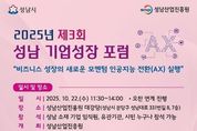 뉴스펀치 탁상훈 기자 | 성남산업진흥원은 오는 10월 22일 11시 30분부터 ‘인공지능 전환 실행 전략’을 주제로 2025년 제3회 ‘성남기업성장포럼’을 개최한다. 이번 포럼은 성남시 중소기업의 성공적인 ‘인공지능 전환(AI Transformation)’을 실질적으로 지원하기 위해 마련됐다. ‘성남기업성장포럼’은 매회 성남시 중소기업이 직면한 경영환경 변화 이슈를 주제로 선정하여 개최되고 있다. 올해는 제1회 ‘기후테그 비즈니스 새로운 성공전략’, 제2회 ‘세계교질서 변화와 맞춤형 경영전략’ 등 두 차례 개최됐고, 14개 유관기관과 300여명의 기업인이 참여했다. 포럼 참가는 성남시 소재 기업인이면 누구나 가능하고, 성남산업진흥원 홈페이지를 통해 참가 신청을 할 수 있으며 행사 당일 현장 등록도 가능하다. 포럼에서는 한국산업기술진흥원 곽용원 첨단산업공급망단 단장이 정부의 ‘인공지능 전환’ 지원정책과 지원사업을 소개하고, 최재식 ㈜인이지 대표이사(카이스트 교수, 국가인공지능전략위원)가 ‘인공지능 전환’을 통한 비즈니스 혁신 사례와 구체적인 실행 전략을 제시할 예정이다. 본행사에 앞서 열리는 ‘지원사