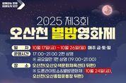 뉴스펀치 탁상훈 기자 | 오산시는 오는 10월 17일부터 26일까지 매주 금·토·일 저녁, 오산천(오색문화체육센터 뒤편)에서 시민들이 야외에서 영화를 즐길 수 있는 '2025 제3회 오산천 별밤영화제'를 개최한다고 밝혔다. 이번 영화제는 남녀노소 누구나 즐길 수 있는 총 10편의 애니메이션과 영화를 상영하며, 오산천을 방문하는 시민이라면 누구나 자유롭게 관람할 수 있다. 특히 올해는 관람객 편의를 위해 ‘배달음식 픽업존’을 운영하여, 휴대폰 앱으로 주문한 음식을 지정된 장소에서 간편하게 수령할 수 있다. 관람객들은 돗자리나 방석 등을 지참해, 자연 속에서 맛있는 음식과 함께 여유로운 영화 관람을 즐길 수 있다. 시 관계자는 “도심 속 자연과 문화가 조화를 이루는 오산천에서 열리는 이번 별밤영화제가 시민들에게 힐링과 특별한 문화 체험의 기회가 되길 바란다”고 전했다.