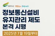 뉴스펀치 탁상훈 기자 | 여주시는 지난 7월 19일부터 ‘정보통신설비 유지보수 ‧ 관리제도’를 본격 시행하고있다고 밝혔다. 이번 제도는 일정 규모 이상의 건축물에서 통신설비가 노후되거나 방치돼 시민 불편이 발생하는 사례를 예방하기 위해 마련된 것으로, 통신설비의 체계적 관리와 안전 강화를 목표로 하고 있다. 새 제도에 따라 연면적 5천미터 이상 건축물은 전문 자격을 갖춘 정보통신기술자를 유지보수 ‧ 관리자로 선임하거나 전문업체에 위탁해야 하며, 관리자는 연 2회 이상 정기점검과 연 1회 성능검사를 의무적으로 실시해야 한다. 점검 결과는 표준 서식에 따라 5년간 보관해야 하며, 여주시의 요청 시 제출해야 한다. 이를 이행하지 않을 경우 최대 300만원의 과태료가 부과될 수 있다. 단계적 유예기간 부여... 기존 건축물도 순차 적용 기존 건축물의 경우 제도 시행에 따른 부담을 최소화하기 위해 규모별 유예기간이 부여됐다. 현재(2025년 10월기준) 연면적 3만㎡이상 건축물은 유지보수 관리자를 선임하고 점검계획을 수립하여야 한다. 이어 연면적 1만㎡이상 ~ 3만㎡미만 건축물은 2026년 7월