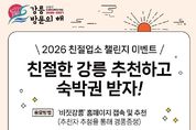 뉴스펀치 조평훈 기자 | 강릉시는 2026-2027 강릉 방문의 해를 맞아 국제관광도시 시민실천운동 추진위원회와 함께 오는 3월 1일부터 ‘2026 관광객 추천 친절업소 챌린지’를 본격적으로 시작한다고 밝혔다. 이번 챌린지는 관광객의 생생한 목소리를 통해 신뢰도 높은 친절 업소를 발굴하고, 지역 외식·숙박 업소의 자발적인 친절 문화를 확산시키기 위해 기획됐다. 시는 이를 통해 강릉의 관광 브랜드 이미지를 제고하고 글로벌 수준의 서비스 문화를 정착시켜 ‘국제관광도시’로의 도약을 가속화할 방침이다. 참여 대상은 강릉을 방문하는 모든 관광객으로, 강릉 여행 중 감동적인 서비스를 경험했거나 추천하고 싶은 업소가 있다면 강릉시 관광 홈페이지 ‘비짓강릉’ 내 전용 게시판을 통해 간편하게 추천할 수 있다. 시는 추천된 업소 중 분기별로 외식업소 2개소, 숙박업소 1개소 등 연간 총 12개소를 선정할 예정이다. 선정은 ▲데이터 무결성 검증 ▲현장 실사(친절·정직·청결 지표 점검) ▲국제관광도시 시민실천운동 추진위원회 심의 등 엄격한 3단계 검증 과정을 거쳐 공정하게 이루어진다. 또한 챌