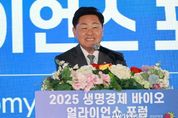 뉴스펀치 김길룡 기자 | 전북특별자치도가 3일 익산 웨스턴라이프호텔 그랜드볼룸에서 '2025 생명경제 바이오 얼라이언스 포럼'을 개최했다. 이날 행사에는 전북자치도 및 익산시 관계자를 비롯해 도의원, 도내 대학 총장·교수, 바이오기업 대표 및 전문가, 도민 등 150여 명이 참석했다. 이번 포럼은 '재생과 정밀의료, 그리고 융합이 여는 미래;를 주제로, 전북의 바이오AI·재생치료·탄소의료기기 등 바이오 특화 전략과 육성 의지를 알리고, 첨단바이오산업 발전 비전과 전략을 공유하기 위해 마련됐다. K-헬스미래추진단 선경 단장(前 오송재단 이사장)이 '바이오 융합으로 여는 미래'를 주제로 기조연설을 진했다. 김관영 도지사를 비롯한 주요 내빈이 참여한 '스크린 버튼 퍼포먼스'를 통해 전북 바이오산업의 미래 비전과 협력 의지를 선포했다. 이어진 세션에서는 ▲차바이오그룹 양은영 부사장의 'CGB-CIC 오픈이노베이션센터-아시아 바이오 혁신의 심장, 세계를 연결하다' ▲고려대학교 오윤배 교수의 '탄소의료기기 국제협력 사례' ▲인포보스(주) 박종선 대표의 'AI 기반 후보물질 분석' 등의 발표가 실시됐다. &nb