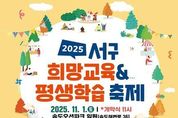 뉴스펀치 김길룡 기자 | 부산 서구는 오는 11월 1일 송도오션파크에서 서부교육지원청과 공동으로 '2025년 서구 희망교육 & 평생학습 축제'를 개최한다. 이번 축제는 ‘아이부터 어른까지, 함께 배우고 나누는 즐거운 하루’를 주제로 오전 11시부터 오후 4시까지 다채로운 프로그램이 펼쳐질 예정이다. 대신여자중학교의 신나는 밴드 공연을 시작으로, 관내 7개 학교, 10개 학생 동아리, 12개 평생학습 동아리가 참여해 열띤 무대를 선보인다. 또한 38개의 특색 있는 체험부스, 온가족 플리마켓, 희망교육 & 평생학습 작품 전시회 등 풍성한 볼거리와 즐길거리로 가득할 예정이다. 특히 오는 11월 22일 개관 예정인 서구아미드림도서관 홍보‧체험부스도 운영되어 구민들이 서구의 첫 구립도서관을 미리 만나볼 수 있다. 공한수 서구청장은 “희망교육과 평생학습이 어우러지는 이번 축제를 통해 지역 주민들이 함께 배우고 소통하며 성장하는 계기가 되길 바란다”고 말했다.