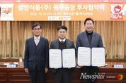 뉴스펀치 김길룡 기자 | 원주시는 10일 오후 1시 30분, 시청 7층 투자상담실에서 지역의 대표 향토기업인 삼양식품㈜와 액상스프 공장 신설 투자를 위한 협약(MOU)을 체결했다. 협약식에는 원강수 시장을 비롯해 김동찬 삼양식품㈜ 대표이사 등 주요 임원과 관계자가 참석해 상호 협력 강화를 약속했다. 이번 협약을 통해 삼양식품은 2027년 상반기까지 780억 원을 투자해 우산동 기존 생산 캠퍼스 부지 내에 액상스프 전용 공장을 신설할 계획이다. 이에 따라 90명의 신규 고용도 창출될 예정이다. 삼양식품의 수출 성장세를 뒷받침하는 생산 역량의 상당 부분이 원주에서 이뤄지고 있어, 이번 투자는 원주시가 삼양식품㈜ 글로벌 공급망의 핵심 기지로 자리매김하는 계기가 되는 동시에 지역 식품 산업의 위상을 한층 높여줄 것으로 기대된다. 원주시는 이번 투자가 지방 세수 증대와 일자리 창출, 지역 경제 활성화에 기여할 수 있도록 신속한 인허가 처리 등 적극적인 행정지원과 함께 재정적 지원에 나설 계획이다. 이번 투자는 올해 4월 같은 그룹사인 삼양제분㈜의 팜유 정제공장 준공 이후 8개월 만에 결정된