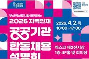 뉴스펀치 김윤걸 기자 | 부산시는 오늘(2일) 오후 2시 벡스코 제2전시장에서 부산 혁신도시와 함께하는 '2026 지역인재 공공기관 합동채용설명회'를 개최한다고 밝혔다. 이번 설명회는 시와 국토교통부가 공동 주최하고 부산경제진흥원이 주관한다. 지역인재에게 맞춤형 채용 정보를 제공하기 위해 부산혁신도시 이전공공기관뿐만 아니라 시 산하 공공기관, 금융 및 관계기관까지 참여 범위를 확대해 역대 최다인 총 33개 기관이 집결하는 만큼 여느 때보다 내실 있는 설명회가 될 것으로 기대된다. 이번 설명회는 부산 지역 공공기관 채용정보 제공을 위해 마련됐으며, ▲사전 행사인 인사담당자와의 토크콘서트와 ▲본행사인 채용설명회로 진행된다. 사전 행사는 오후 1시 20분부터 진행되며, ▲정부 산하기관인 부산항만공사, 시 산하기관인 부산교통공사 인사 담당자와의 토크콘서트 등이 진행된다. 채용설명회(본행사)는 오후 2시부터 진행되며, ▲공기업 취업 전문 강사 강민혁 씨의 ‘2026년 공공기관 채용전략 특강’ ▲한국자산관리공사, 한국남부발전(주) 인사 담당자의 ‘채용 요강 발표’ ▲영화진흥위원회, 주택도시보증공