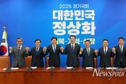 뉴스펀치 김용희 기자 | 이재명 대통령은 16일 오후 2시부터 2시간 넘게 대통령실 회의실에서 이재용 삼성전자 회장, 최태원 SK그룹 회장, 정의선 현대차그룹 회장, 구광모 LG그룹 회장, 여승주 한화그룹 부회장, 정기선 HD현대 수석부회장, 서정진 셀트리온 회장 등 경제인들과 산업부 장관 그리고 안보실장, 정책실장, 경제안보비서관 등이 참석한 가운데 '관세협상 후속 민관 합동회의'를 주재했다. 회의는 한미 관세협상이 마무리되면서 기업들의 국내 투자 확대, 수출 다변화, 중소기업과의 상생 협력 및 한미 투자 패키지를 활용한 대미 시장 진출과 양국 경제 협력 방안을 논의하기 위해 마련됐다. 간담회에서 이 대통령은 한미 통상 안보 협상 과정에서 가장 많이 애를 쓴 건 기업인들이라면서 기업인들의 헌신과 노력에 감사를 전했다. 동시에, 앞으로가 더욱 중요하다면서 경제 문제 해결의 첨병인 기업들이 자유롭게 활동할 수 있게 정부가 최선을 다하겠다 밝혔다. 더불어 대미 투자가 강화되면서 국내 투자가 줄지 않을까 하는 걱정이 없도록 국내 투자에 마음을 써 달라면서, 특히 지방 산업 활성화에 기업인들이 더 많은 관심을 가져 달라 당부했다. 또한 이 대통령은 노동없이 기업하기