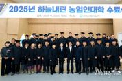 뉴스펀치 김길룡 기자 | 인제군은 지난 26일 오후 1시 30분, 인제군농업기술센터 대교육장에서 ‘2025년 하늘내린농업인대학 수료식’을 개최했다. 올해 하늘내린농업인대학은 사과 기초과정과 심화과정 2개 과정으로 운영됐다. 3월 5일 입학식을 시작으로 기초과정 16회 69시간, 심화과정 18회 83시간의 교육과정으로 진행됐으며, 총 53명의 교육생이 수료했다. 수료식은 최상기 인제군수의 대학장 인사말로 시작해 상장 및 수료증 수여가 이어졌다. 올해는 농촌진흥청장상 1명, 도지사 표창 1명, 개근상 12명 등 총 14명의 교육생이 우수한 성과를 인정받았다. 이어 농업기술과장의 운영결과 보고, 수료생 대표 답사, 기념촬영 순으로 행사가 진행됐다. 2013년부터 운영되고 있는 사과 과정은 이론 교육과 실습, 현장교육, 선진지 견학을 아우르는 장기적‧체계적인 교육과정으로 교육생들로부터 호평을 받아왔다. 올해는 교육생들의 요구를 반영해 기초‧심화 2개 과정으로 확대 운영돼 더욱 전문화된 교육을 제공했다. 인제군 하늘내린농업인대학은 2026년에도 지역 농업 발전을 선도할 핵심 인력을 육성하고, 스스로 학습하고