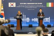 뉴스펀치 김용희 기자 | 이재명 대통령은 19일 조르자 멜로니 이탈리아 총리와의 정상회담 뒤 "저와 멜로니 총리는 전략적 동반자 명칭에 부합하는 미래지향적 수준으로 양국 관계를 더욱 발전시켜 나가기로 합의했다"고 밝혔다. 이 대통령은 이날 청와대에서 멜로니 총리와의 정상회담 후 '공동 언론 발표'에서 이같이 말했다. 이 대통령은 "교역 분야 협력은 양국 경제규모와 브랜드 파워에 걸맞은 수준으로 더욱 확대하기로 했다"며 "이를 위해 양국 기업이 참여하는 한-이탈리아 비즈니스 포럼을 새 기회 창출의 장이자 기업 애로 상담 창구로 활성화하는 데 뜻을 모았다"고 밝혔다. 이어 "특히 중소기업 생태계가 잘 발달한 이탈리아의 강점을 바탕으로 중기 육성과 지원에 관한 협력도 함께 추진해 나갈 것"이라고 말했다. 이 대통령은 또 "국가 미래가 달린 과학분야 협력이 더욱 확대될 것"이라며 "기초응용분야 공동연구지원을 통해 역량 있는 연구자를 지속 발굴하고 인공지능, 우주항공 같은 첨단산업으로 협력의 지평을 더욱 넓혀가겠다"고 밝혔다. 이어 "방산 분야에서도 서로 강점에 기초해 상호 보완적 협력을 이뤄내