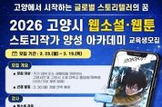 뉴스펀치 박상훈 기자 | 고양산업진흥원이 웹콘텐츠 산업을 이끌어갈 스토리 전문 인재 발굴을 위한 ‘2026 고양시 웹소설·웹툰 스토리작가 양성 아카데미’ 교육생을 모집한다. 이번 교육과정은 진흥원과 스토리 콘텐츠 분야 전문가들로 구성된 한국만화스토리협회와 협업해, 고양시 작가 지망생들의 데뷔를 목표로 이도경, 김양수, 송향희 등 현역 작가들이 다양한 창작 노하우를 공유할 예정이다. 스토리 작가 데뷔에 관심 있는 고양시민, 고양시 소재 대학교 재학생·졸업생을 대상으로 하며, 오는 3월 19일까지 이메일로 신청하면 된다. 교육은 4월 10일부터 매주 금요일 총 10회에 걸쳐 진행되며, 자세한 내용은 포스터 내 QR코드 또는 진흥원 누리집에서 확인할 수 있다. 진흥원은 웹툰·웹소설 등 부가가치가 큰 웹콘텐츠 IP를 발굴하고, 우수한 창작 인재 양성을 위한 교육 사업을 추진하고 있다. 특히 ‘IP융복합 콘텐츠 클러스터’조성을 통해 고양시 특화 웹콘텐츠 산업을 지속적으로 육성해 나갈 계획이다.